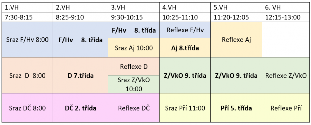 - sraz 20min před začátkem hodiny, po skončení reflexe cca 45min